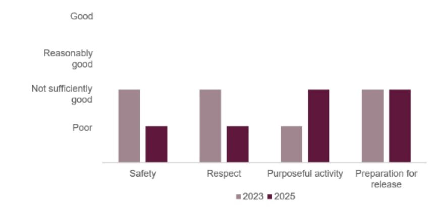 Since the last inspection in 2023 there had been 10 deaths in custody, four of which were suspected of being attributed to drug misuse. A very high number of medical emergencies were linked to drugs, yet health services were no longer providing round-the-clock care, were not meeting the needs of patients, and in some cases were unsafe. The prison’s response to recommendations made by the Prison and Probation Ombudsman and local learning reviews was also inadequate and not all incidents of self-harm were being recorded. Prisoners listed the inconsistency in the regime and prison systems, difficulty maintaining family ties and an inability to see health professionals as some of the triggers for self-harm.
